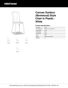 The Cannes Outdoor 'Bentwood' Style Chair is a molded plastic reproduction of the Replica Thonet No 18 Bentwood Chair. The Cannes Outdoor 'Bentwood' design is based on the 20th Century sought after European cafe chair, designed by Michael Thonet.